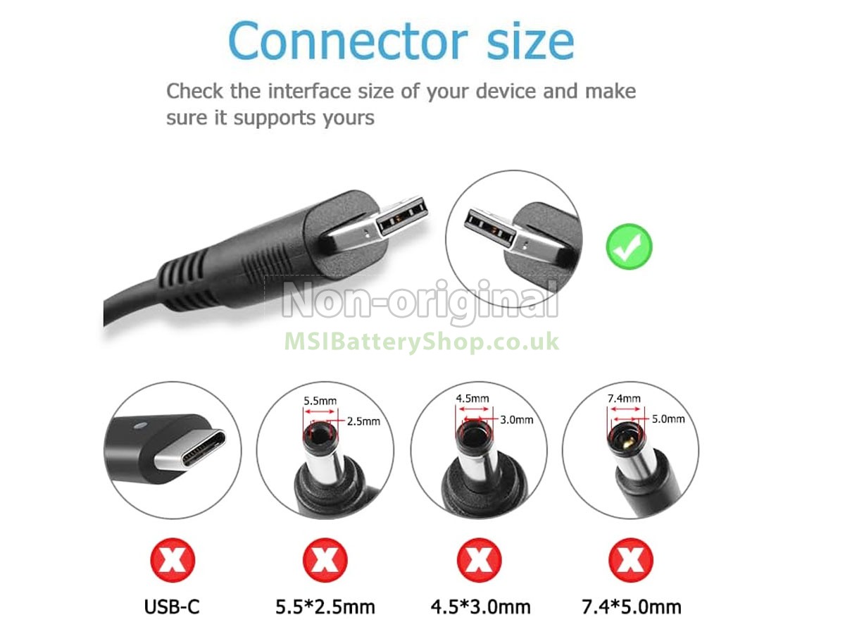 ② Connector type:Make sure the adapter's connector fits your laptop's charging port perfectly.