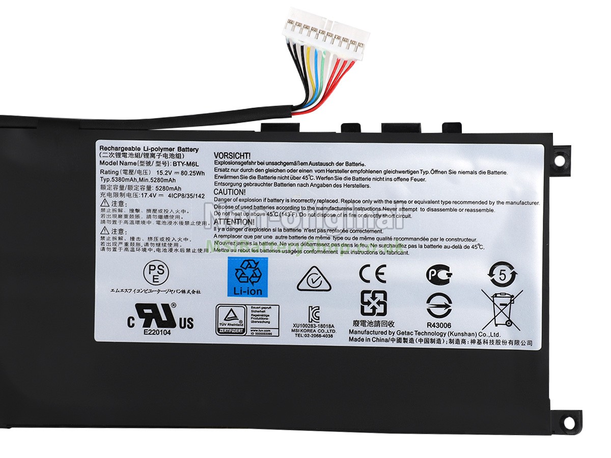 Our MSI CREATOR 17 A10SFS-896FR replacement battery has also passed a series of safety certifications such as BSI, ISO9001:2015, CE, and RoHS. In addition, before leaving the factory, all batteries for CREATOR 17 A10SFS-896FR go through more than 100 rigorous tests, just to improve using experience!
